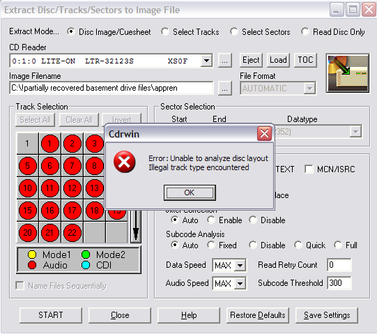 Then DiscJuggler v.4.01 and end up with ILLEGAL MODE FOR THIS TRACK