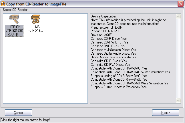 Next I gave CloneCD 4.0.0.1 a try. It did a good job of showing me my